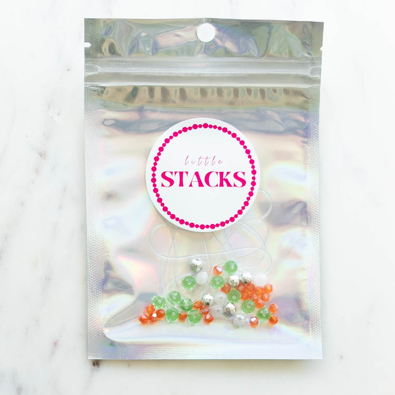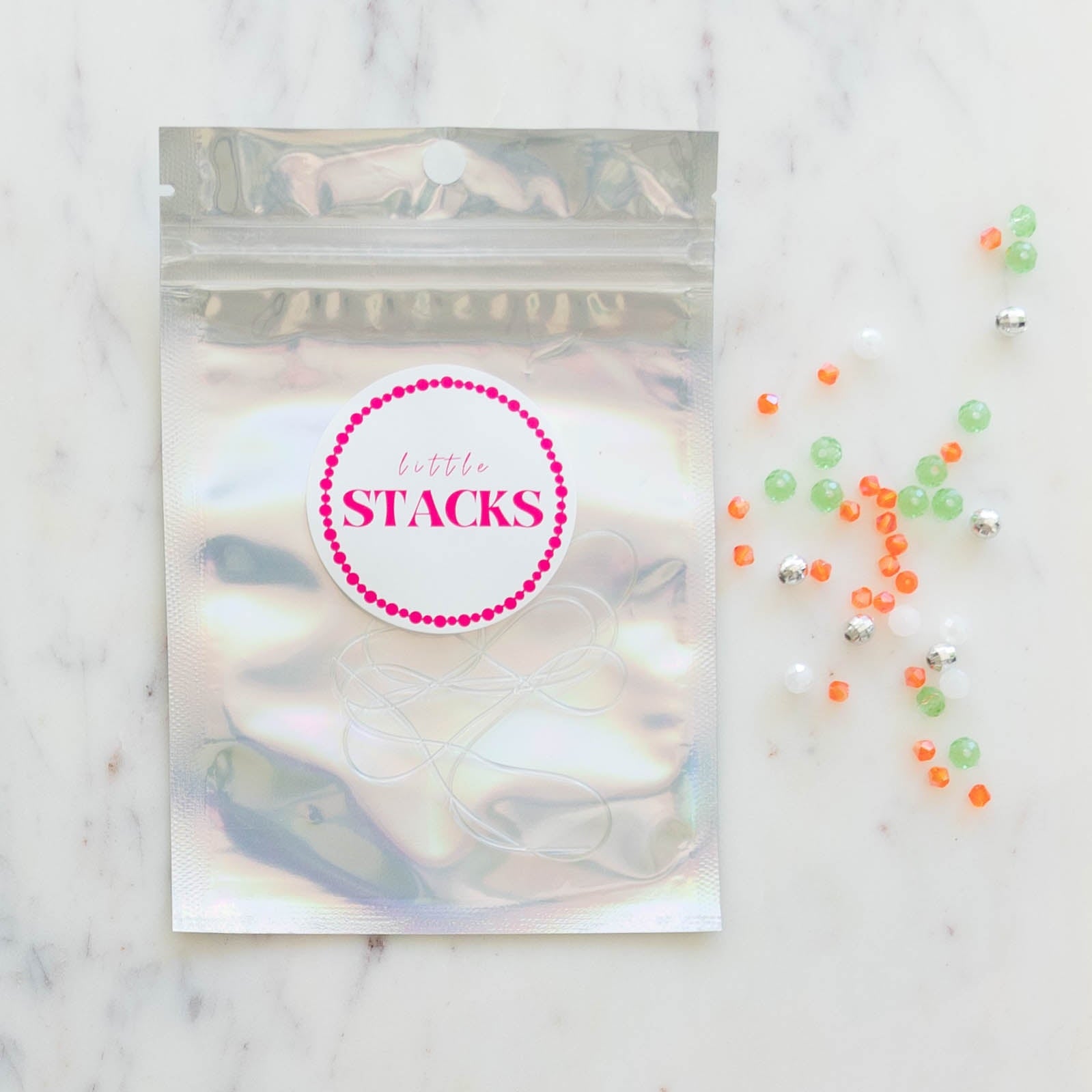 Each kit is subject to variation, please add in "SPECIAL ORDER INSTRUCTIONS" at checkout or email us at littlestacksco@gmail.com for a custom kit or a specific order. Makes approximately 2+ bracelets, based off 10 year old standard sizing.